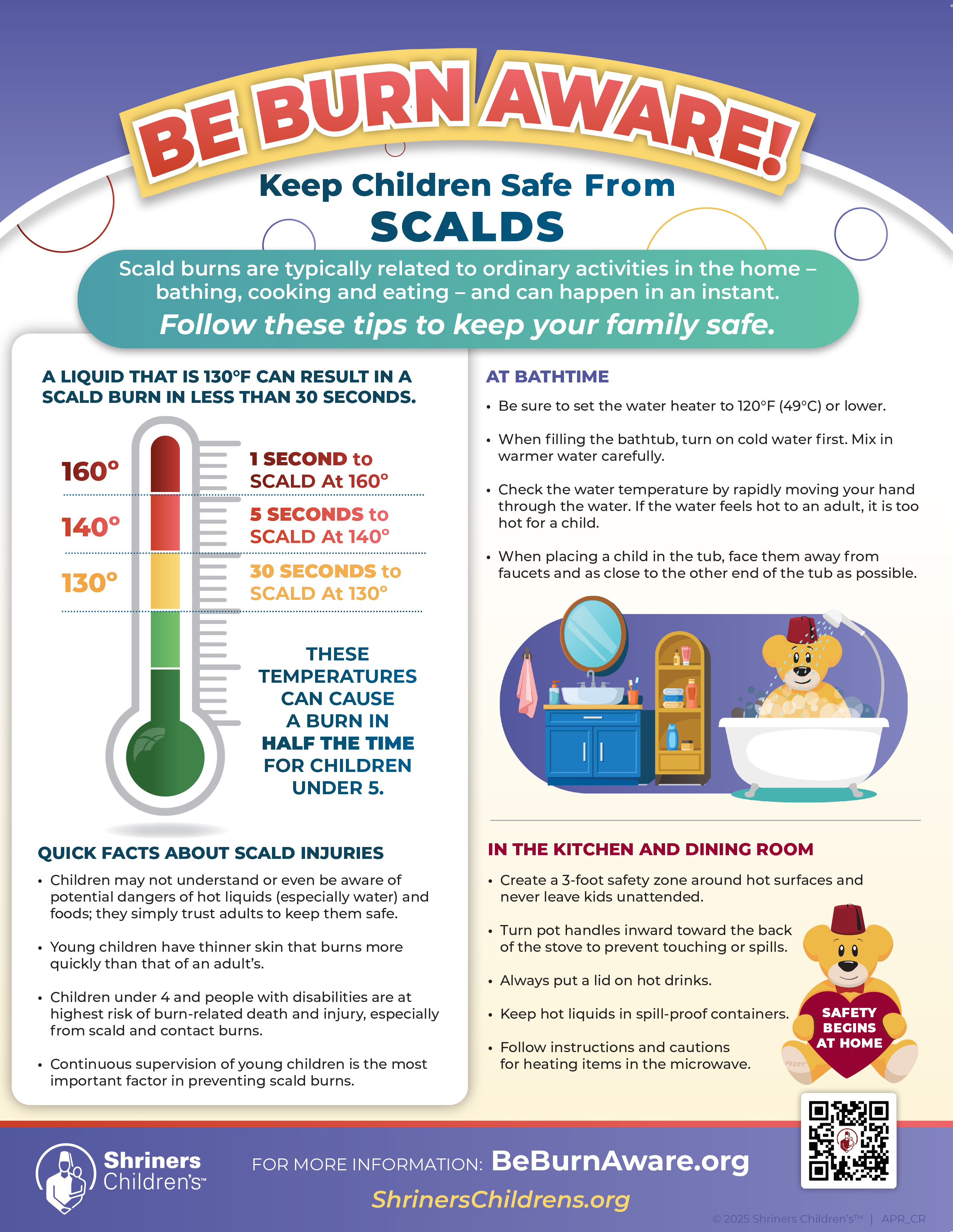 8.5 x11 information card with information to Keep Children Safe from Scalds