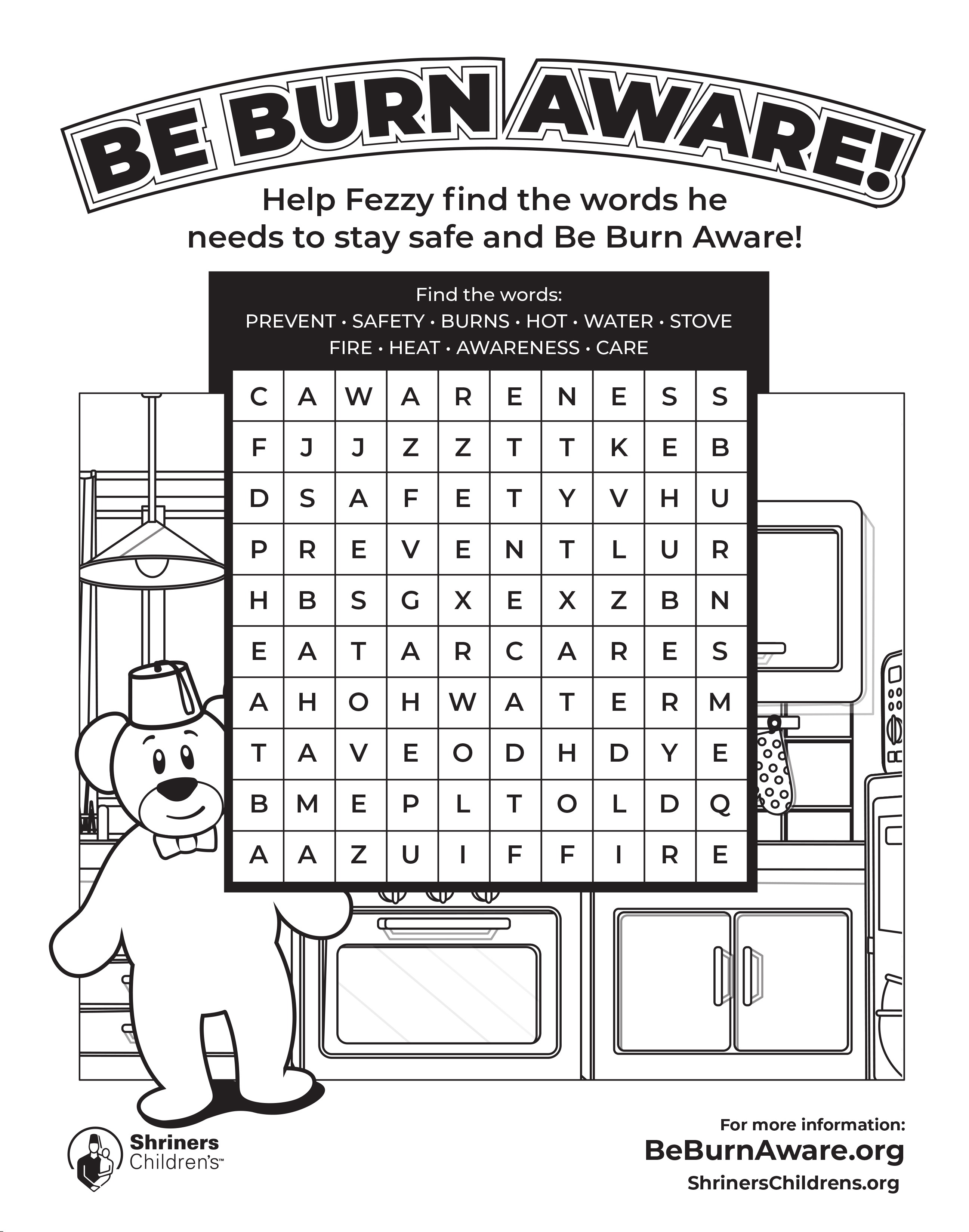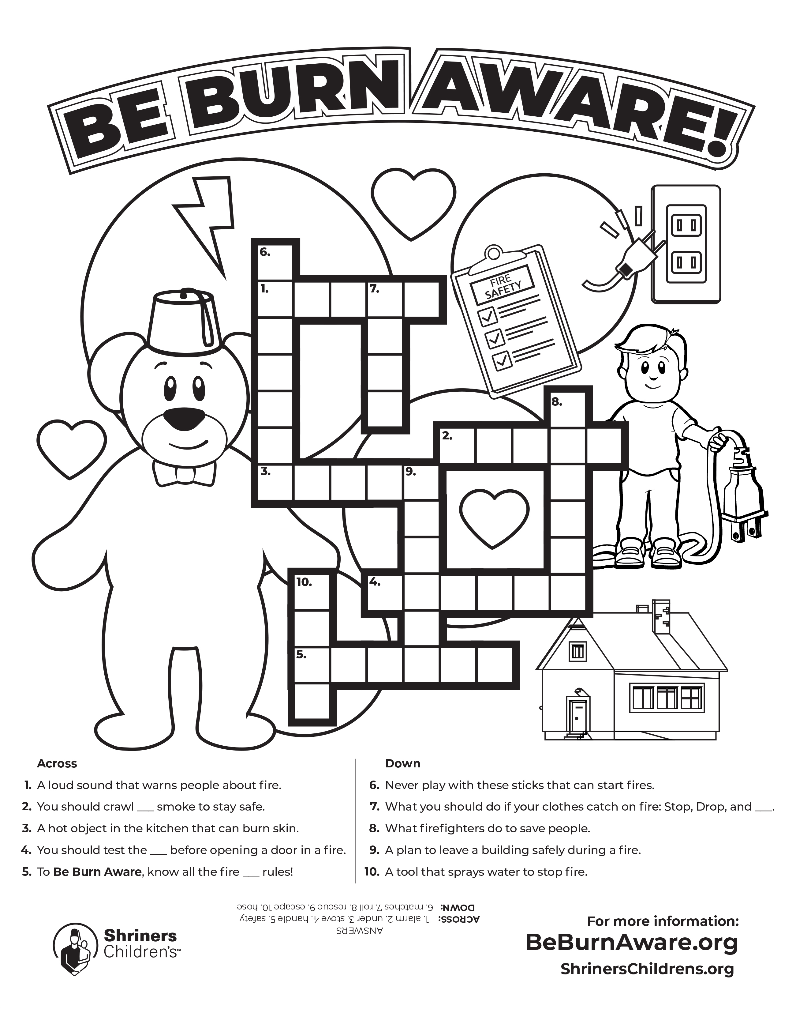 Spanish | Burn Awareness~¡Cuídate de las Quemaduras! Con "Boots y Brewster" Edades 8-12 Actividad/Libro para colorear (SHR-1_8-12s)
